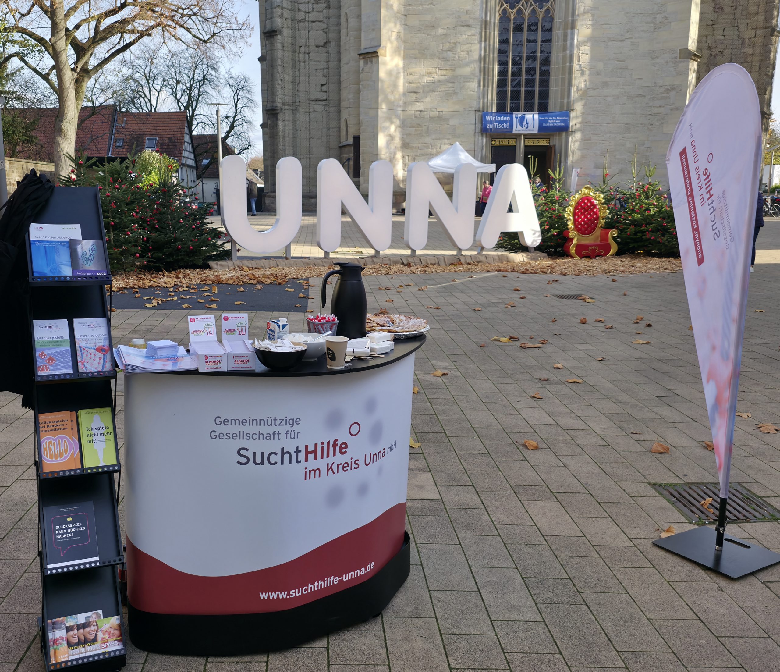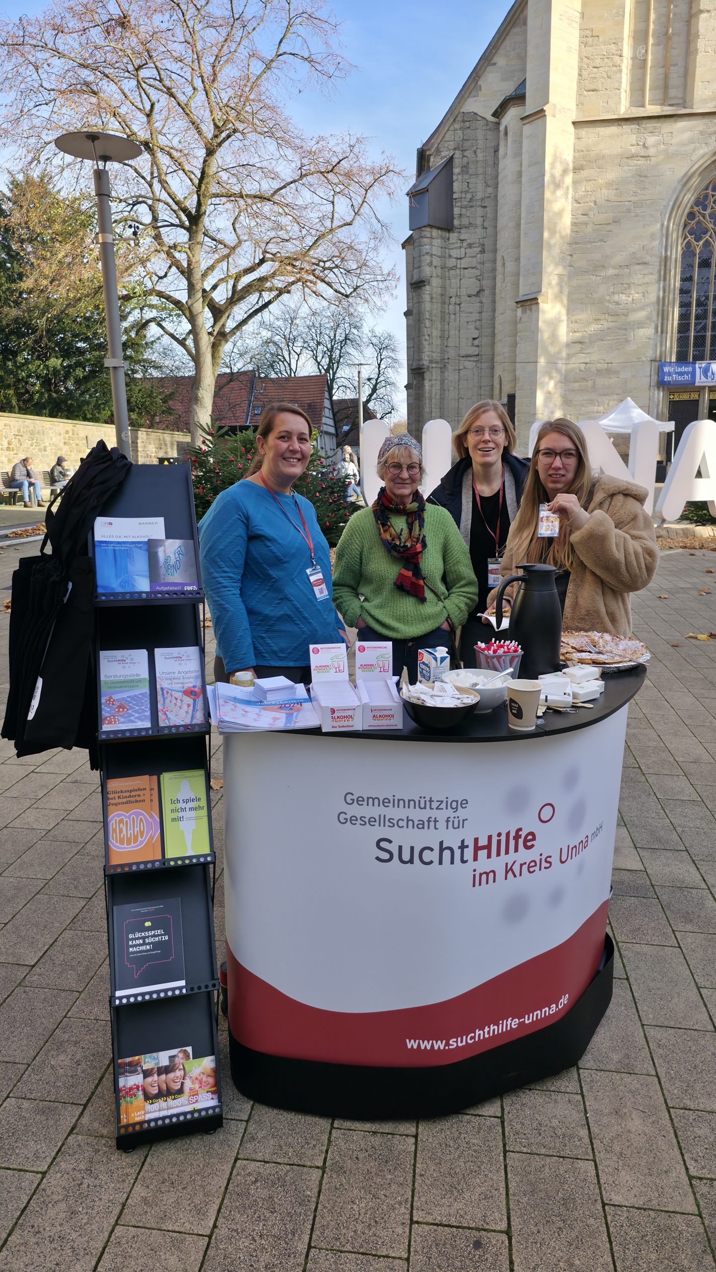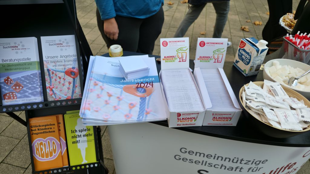 Am 13.11.2025 haben wir uns am bundesweiten Aktionstag Suchtberatung unter dem Schwerpunktthema „Sucht betrifft uns alle – Hilfe auch!“ beteiligt. Um unsere Beratungsstelle sichtbarer zu machen, haben wir vor unserer Tür in der Bahnhofstr. 3, wo wir bei illegalem Substanzgebrauch beraten, einen Stand mit Infos, Kaffee und frischen Waffeln aufgebaut. Bei sonnigem Herbstwetter sind sehr viele interessante Gespräche zustande gekommen, die Aktion kann als voller Erfolg bezeichnet werden!